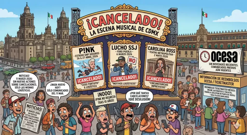 Impactantes cancelaciones de conciertos de P!nk, Lucho SSJ y Carolina Ross en CDMX sorprenden a fans. Conoce los detalles sobre los motivos logísticos y el proceso de reembolso, sin nuevas actualizaciones en las últimas 12 horas del 11 de marzo.