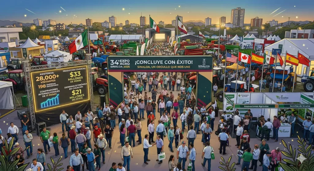 La edición 34 de Expo Agro Sinaloa 2026 finaliza con 33 millones de pesos en operaciones proyectadas, 28 mil visitantes y una derrama económica de 21 millones para Culiacán, consolidando su impacto agrícola y comercial en México y el mundo.