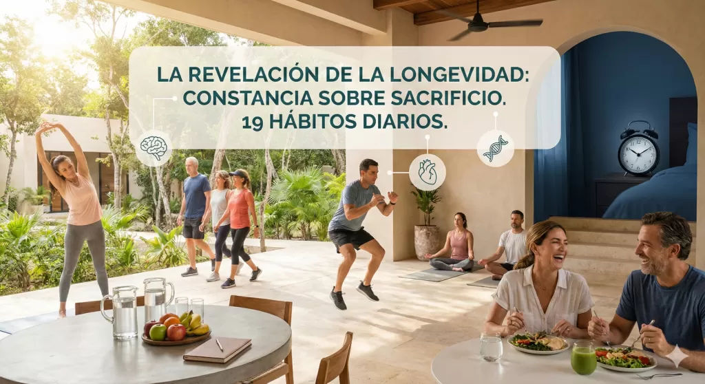 Descubre los 19 hábitos diarios esenciales, desde la exposición solar matutina hasta la regla 3-2-1 del sueño, que expertos revelan para impulsar tu longevidad y mejorar radicalmente tu calidad de vida. Un informe clave para México y el mundo.