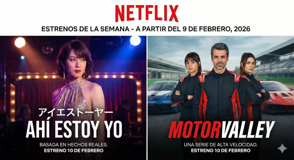 Los impactantes estrenos de Netflix para la semana del 9 de febrero de 2026. La emotiva película japonesa 'Ahí estoy yo' y la adrenalínica serie italiana 'Motorvalley' llegan este 10 de febrero para cautivar a la audiencia global con historias únicas
